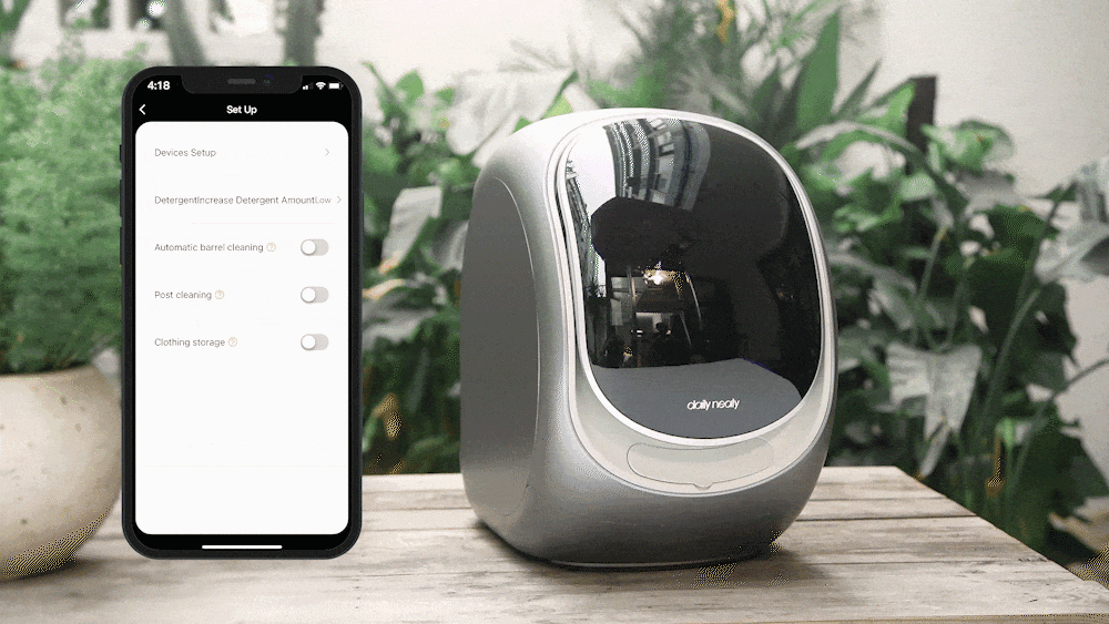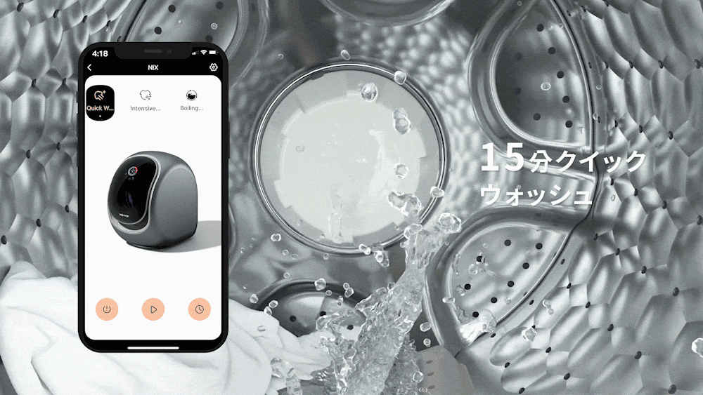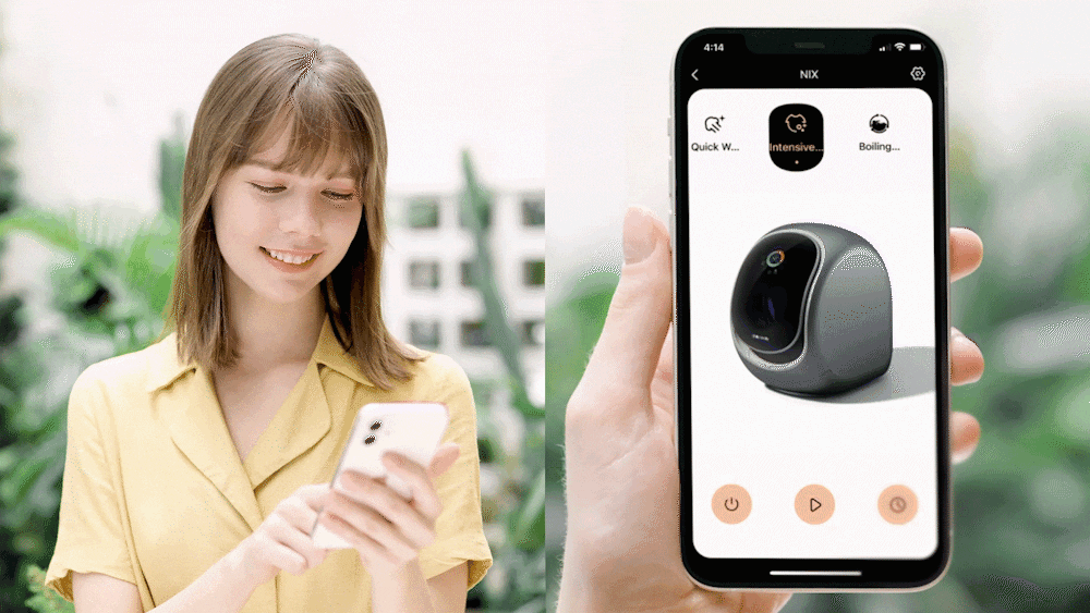 Alexa、Google Homeなどと接続すると、音声コマンドでNIXを簡単に制御できます。NIXをアプリで操作する場合、衣類のリアルタイム監視、オールインワンでの洗濯と乾燥の最適化、遠隔操作、クイックモードの設定、そしてクラウド上での高度な機能へのアクセスが可能です。また、OTAアップグレードにより、NIXを最新の状態に保つことができます。