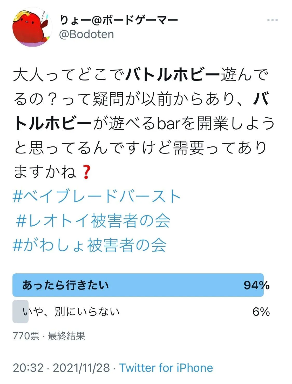 こちらは昨年行った『バトルホビーBarは需要があるのか?』というアンケート