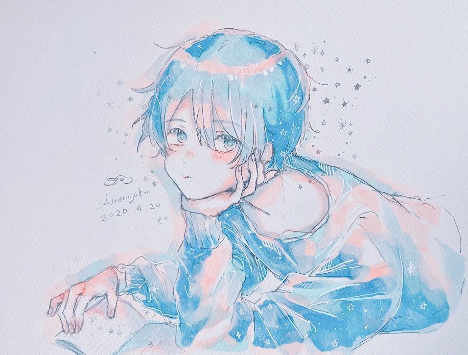 イラストレーター『あめのじゃく』は、「空・夜・星」を中心に青色を基調としたテーマ、モチーフのイラストをSNS上で発表しています。