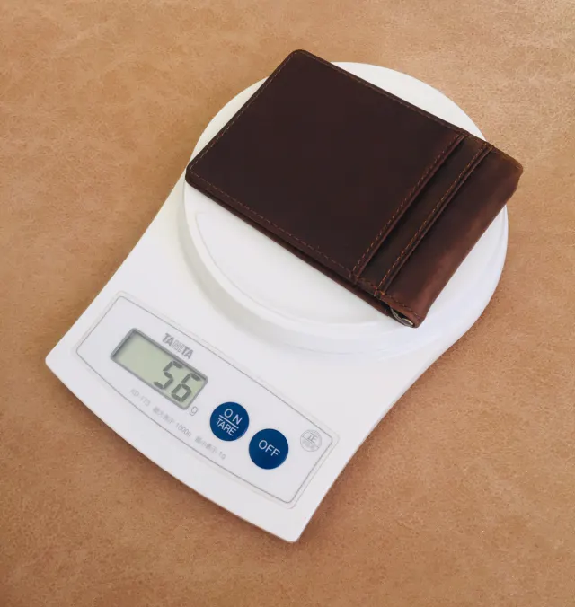 素材に本革のクレイジーホースレザーを使用したにもかかわらず、僅か11㎜という驚きの薄さを実現。