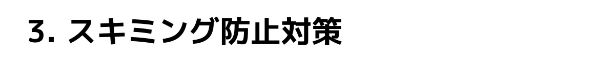 現在は国内外でカード決済が一般的ですが、カードに触れずに至近距離からカード情報を盗み取るスキミングが急激に増加しています。