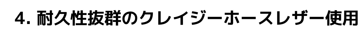 クレイジーホースレザーとは、その美しさ、強さ、耐久性で何世紀も前から知られている高級な牛革です。名前の由来は馬の鞍(くら)作りによく使用されていたことからその名が付いた高級牛革です。