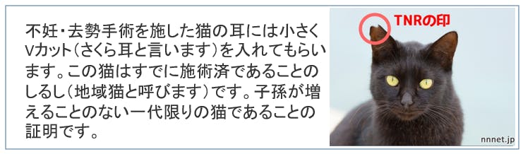 つまり、野良猫を少しずつ減らそうという活動です。野良猫に困っている住民にもメリットがあります!