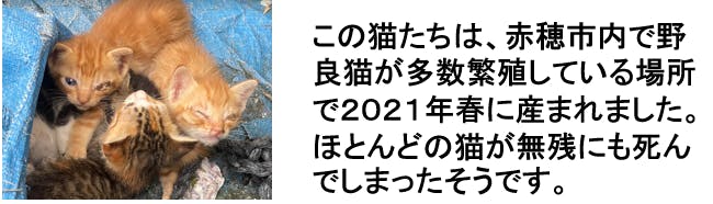 それでも残念ながら赤穂市内のいたるところで猫が遺棄されているのが現実です。