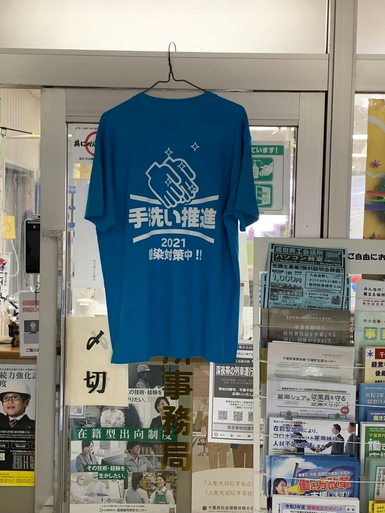 成田市商工会のみなさんも手洗い推進TシャツでPRしてくれました!私の住む成田市の飲食店や土産物屋さんなどは、みなさん熱心に感染対策を行っています。たくさんの方が「手洗い推進Tシャツ」を活用して、地域全体で盛り上げてくれています。この運動をもっともっと広め、成田市はもちろん、他の地域にも広げていければと思っています!