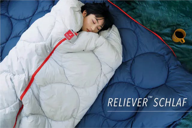 やすらぎ、くつろぎ、安心の意味であるRELIEVE(レリーブ)から、キャンプでもより快適な眠りを届けたい思いから、レリーバー™シュラフと名付けました。