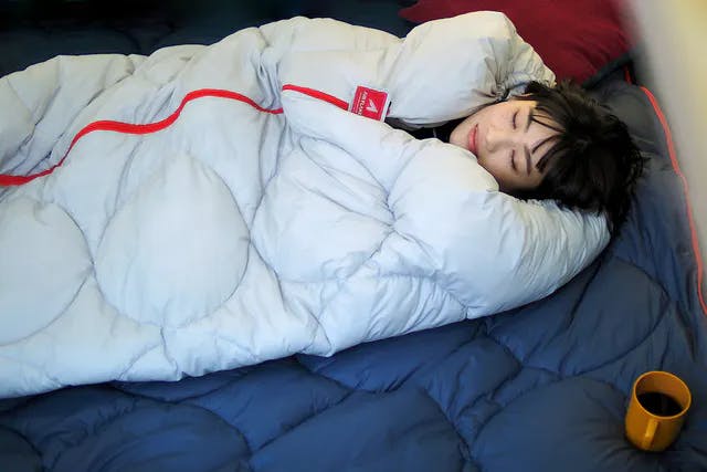 急な来客の際もレリーバー™️シュラフを掛け布団にすれば、いつもと変わらないふわふわのお布団に変身!お客様にもゆっくりと眠っていただけます。