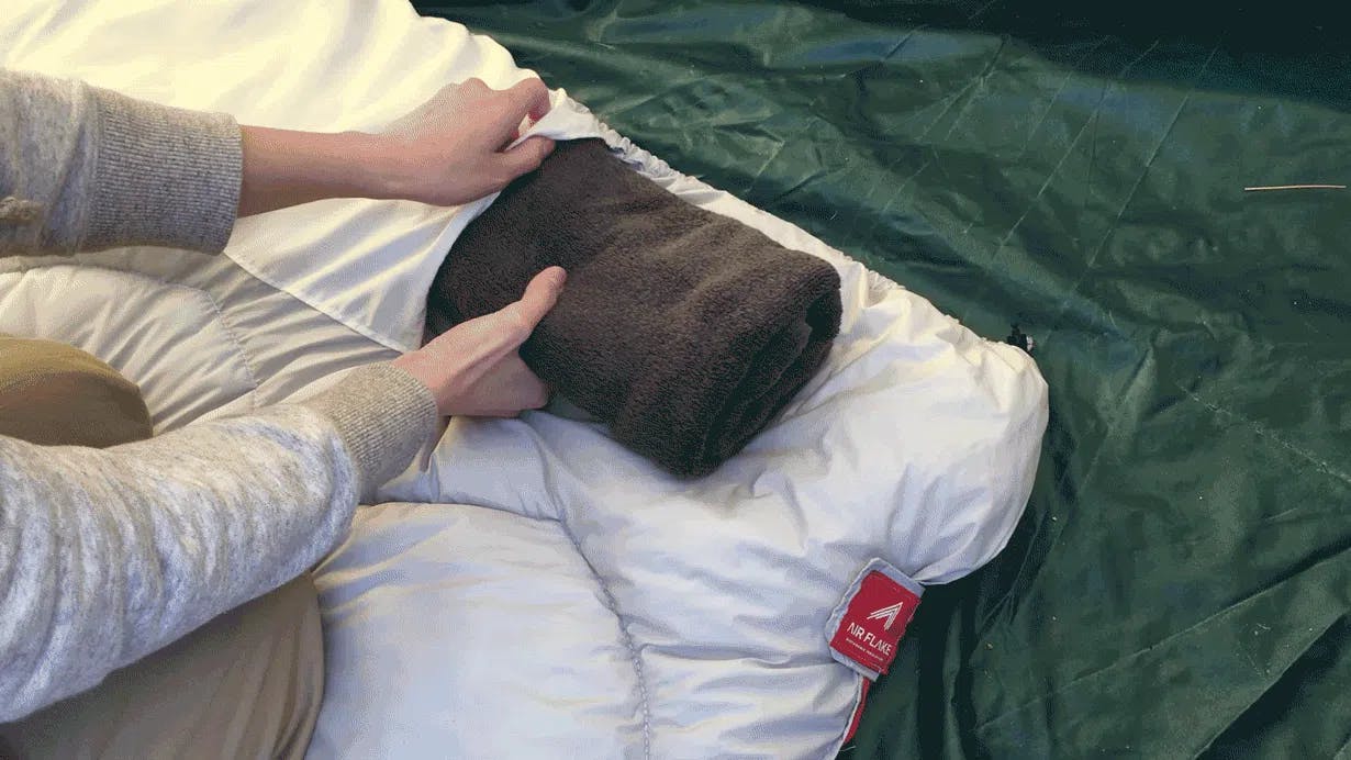 首元に筒状の枕用ポケットがついているから、クルクル丸めたタオルを入れて簡易枕としてお使いいただけます。