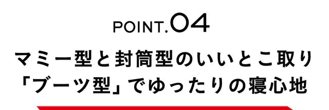 今回のプロジェクトのため開発されたマミー型の安心感とゆとりがある封筒型のいいとこ取りをした「ブーツ型」!