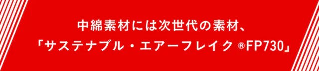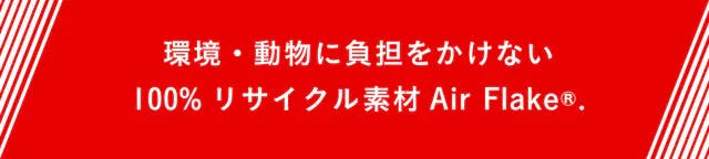 r Flake®︎」の良さを十分に活かす、やわらかくなめらかな肌ざわりの生地を使用。「Air=空気、Flake=ひとひら」というネーミングのとおり、ふんわりソフトな風合いの、新しい中わた素材を使用しています。繊維と繊維の間にふんわりと空気を抱え込むため、軽くて保温性に優れます。