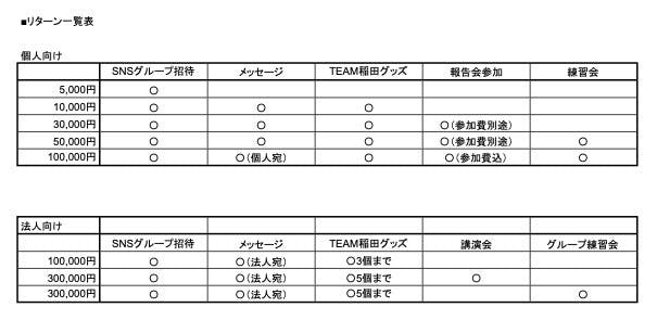 ・TEAM稲田報告会参加権利(リターン金額に応じて、参加費別途発生)
