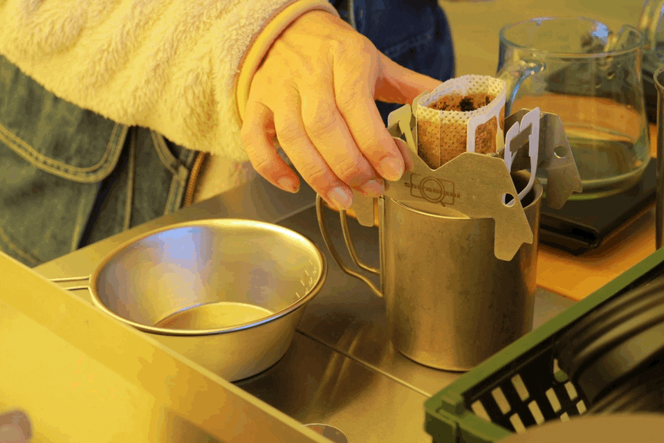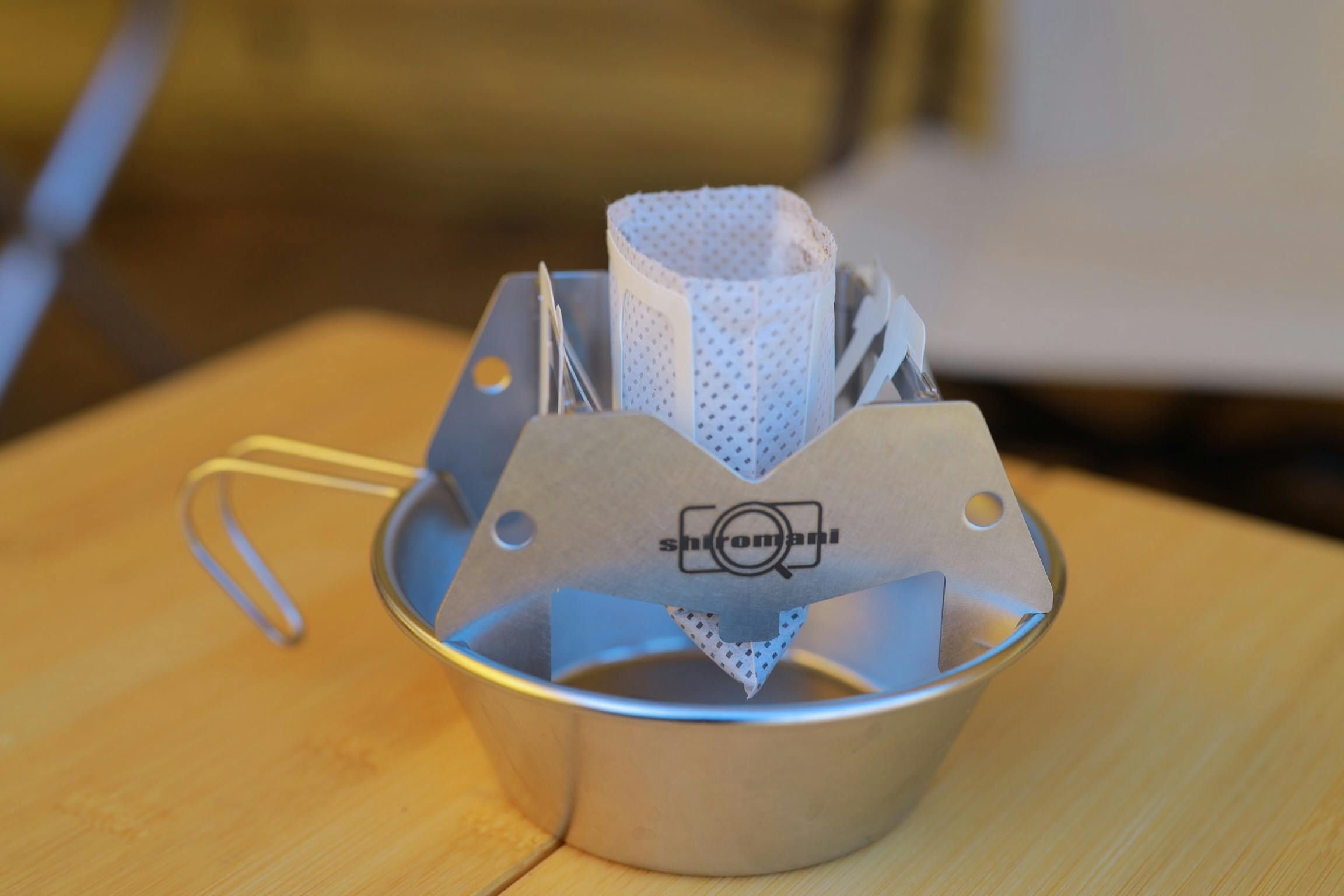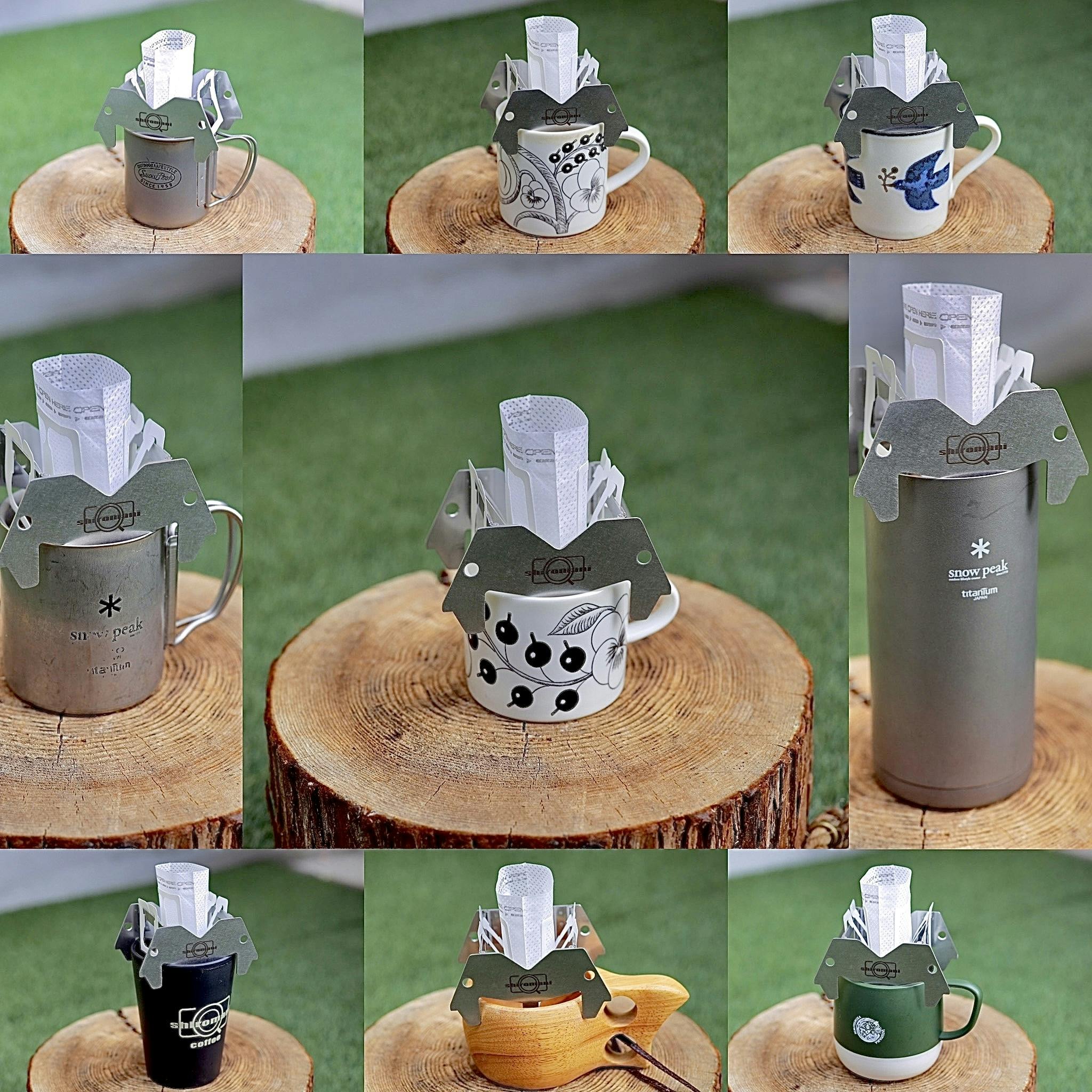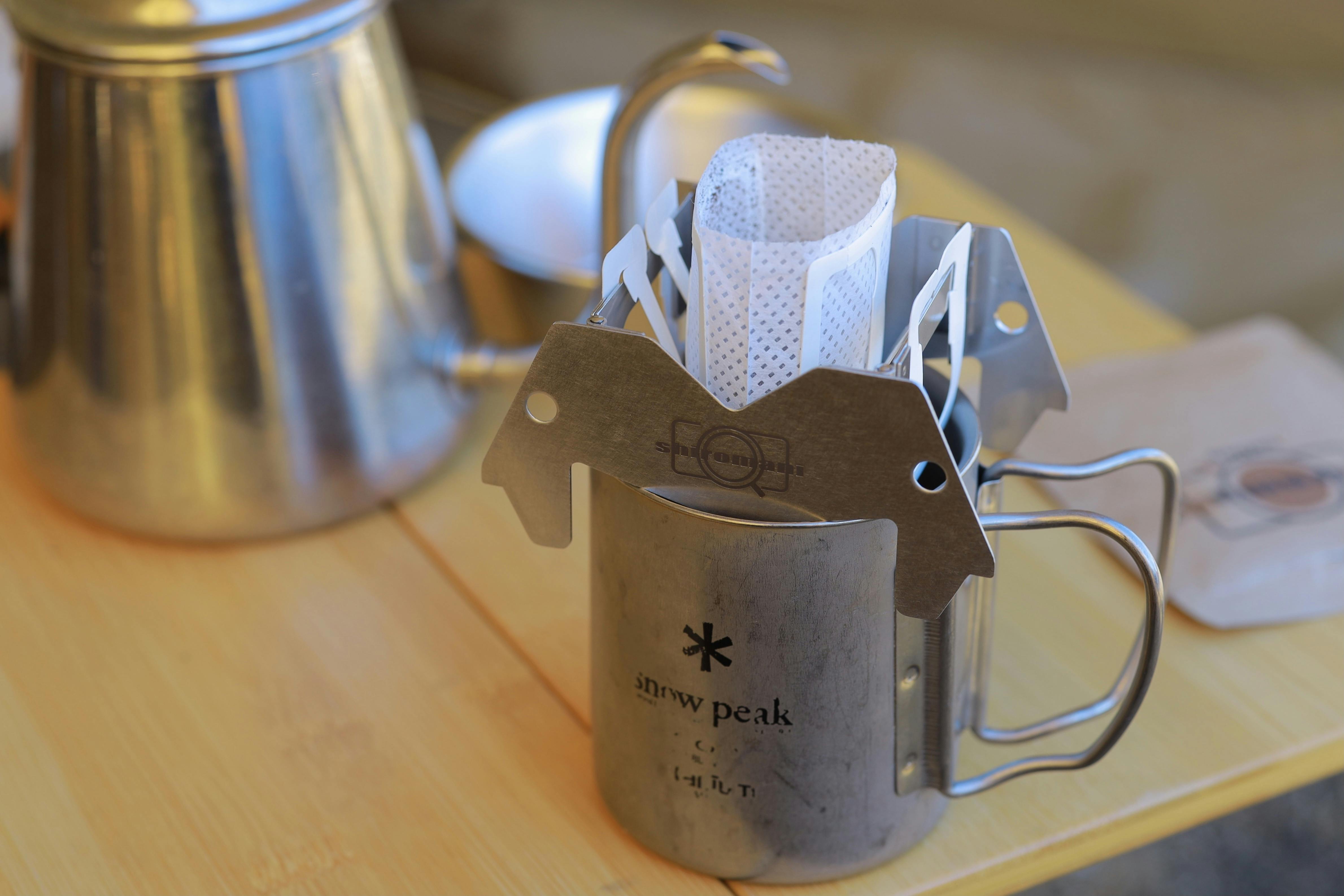 直接シェラカップでコーヒーを淹れる事が出来ます。マグカップで淹れた時は、ドリップバッグとポタリスの置き場にする事も出来ますね。