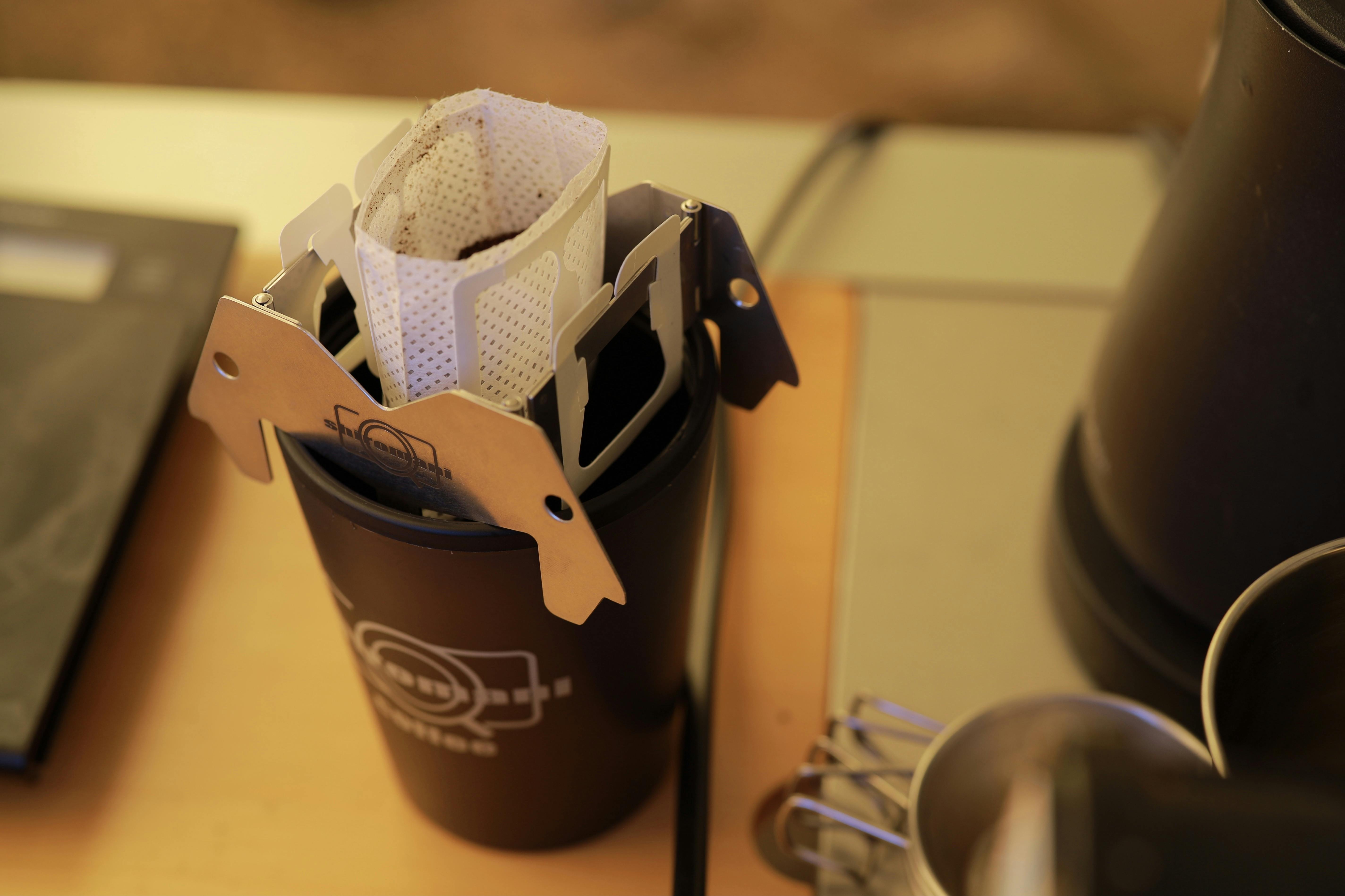 オフィスや自宅、出張先でも!キャンプギア感溢れるデザインのポタリスでコーヒーを淹れてみよう。その場が自然を感じられる空間になるかも知れません。休憩時間のスマートなコーヒータイムを楽しみたいですね。