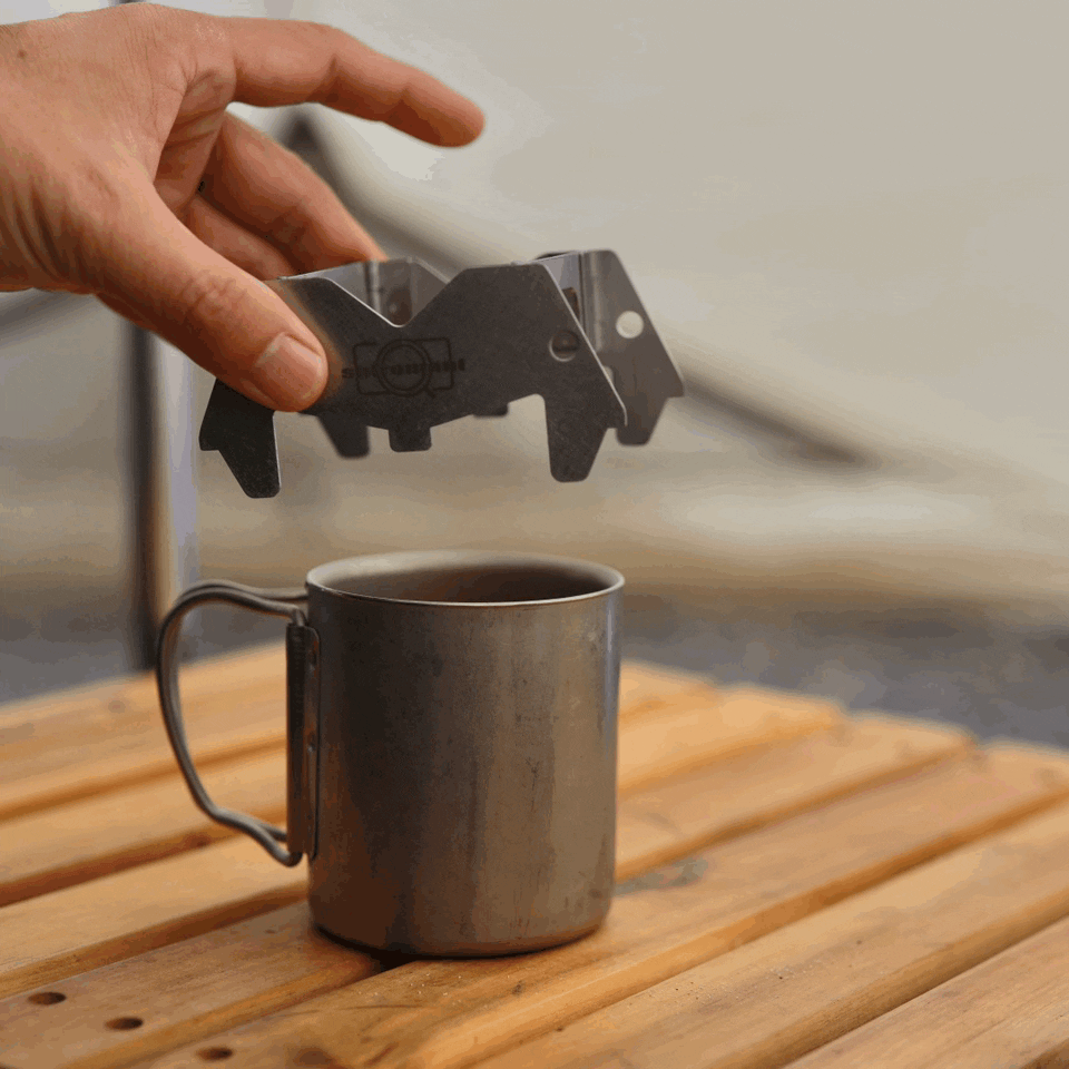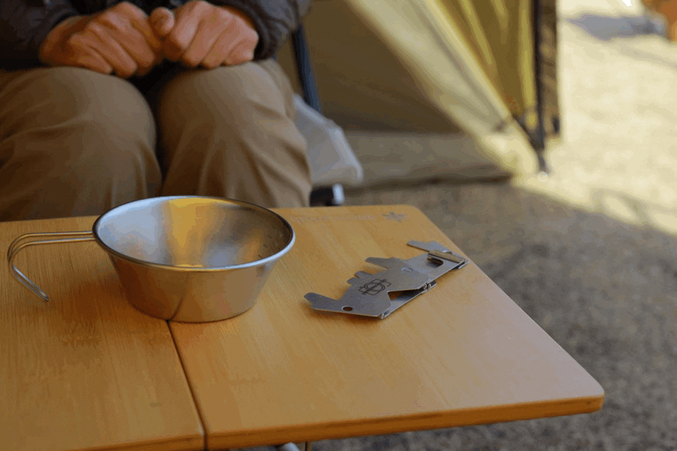 キャンパーにとっては馴染み深いシェラカップ。なんとポタリスはこのシェラカップにジャストフィット!乗せるだけでセット出来ます。