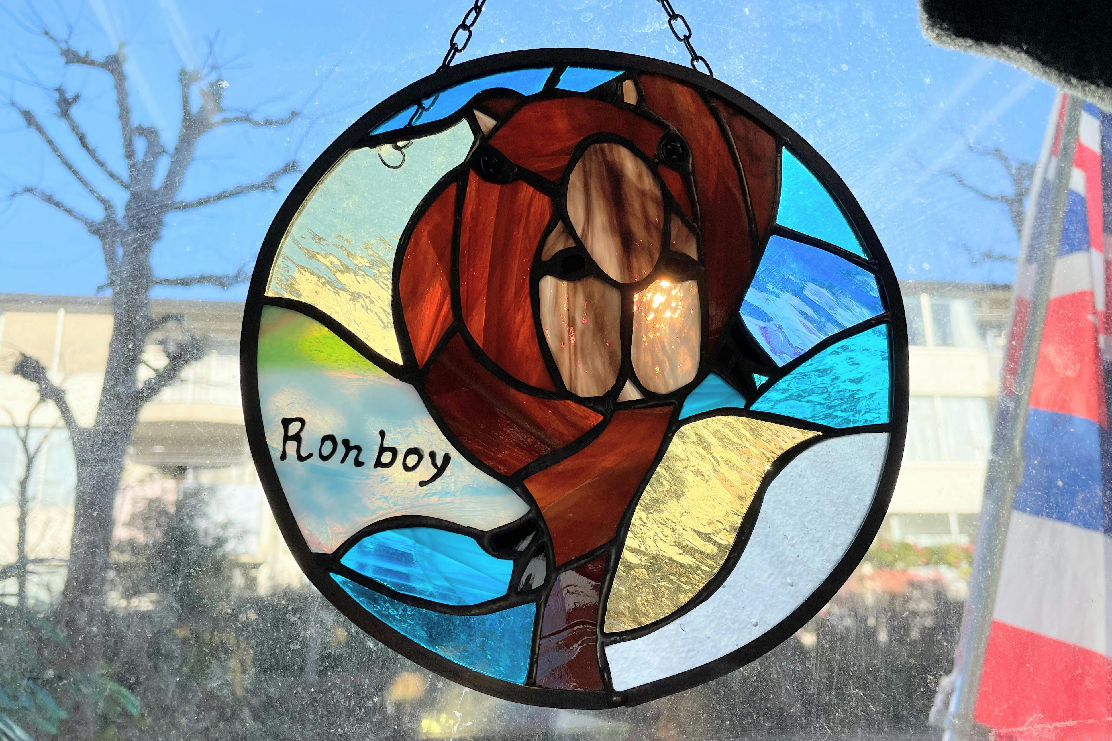 ④ ステンドグラス(20cm)ロンくんとお礼のメール 限定5個 支援額12万円