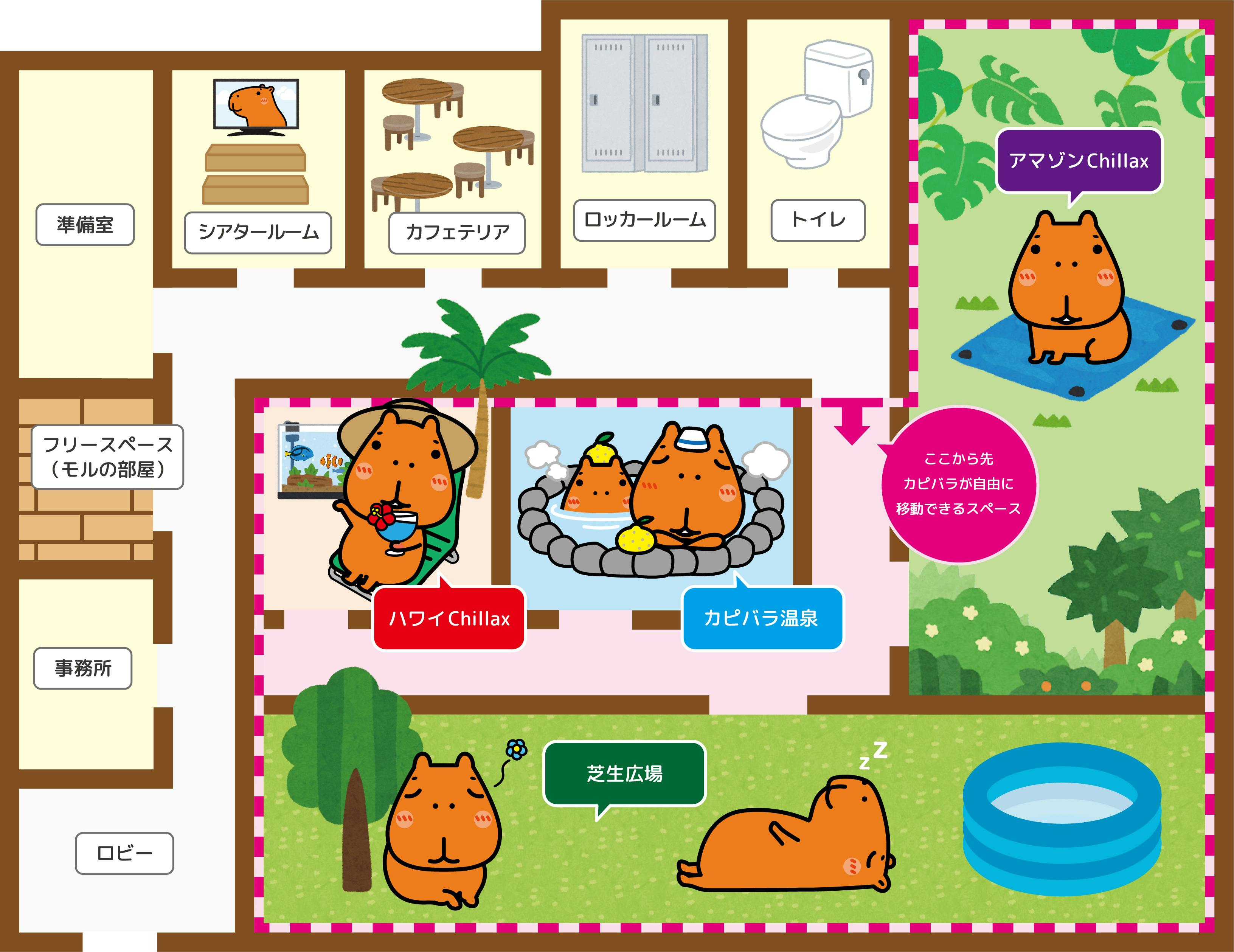 カピバランドPUIPUIは2018年横浜市内に①こども達の健全な成長を支えること、②カピバラとの触れ合いをきっかけに新たなコミュニティを創出し、皆様の社会力を高めていくこと、そして③皆様への癒しの場を提供することを目途に、カピバラの幸せを最大限に考えて作られた屋内型ふれあい動物園です。施設設計・運営から飼養管理まで飼養管理有資格者、生物学者、生化学者が直接携わるからこそ実現した施設です。