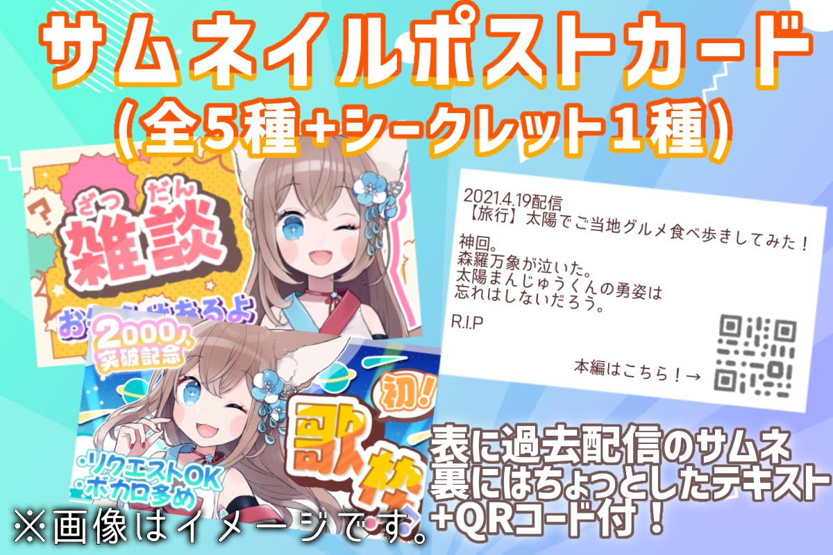 ユキノメが制作した過去の配信サムネイルが印刷されたポストカードです。ウラ面には感想などのテキスト+配信本編のQRコード付!