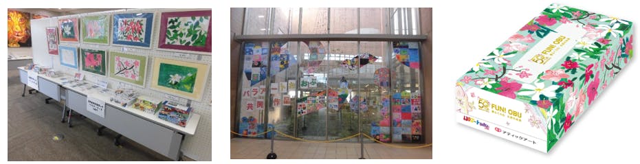 大府市では障がいのある方のアート制作活動を応援し、障がいと向き合いながら自立を目指すアーティストを応援しています。2021年12月に開催したパラアートおおぶ2021では、市内の特別支援学校の生徒が描いた作品を使用したボックスティッシュを制作し、輝く障がい者を社会に発信する取組を進めてきました。