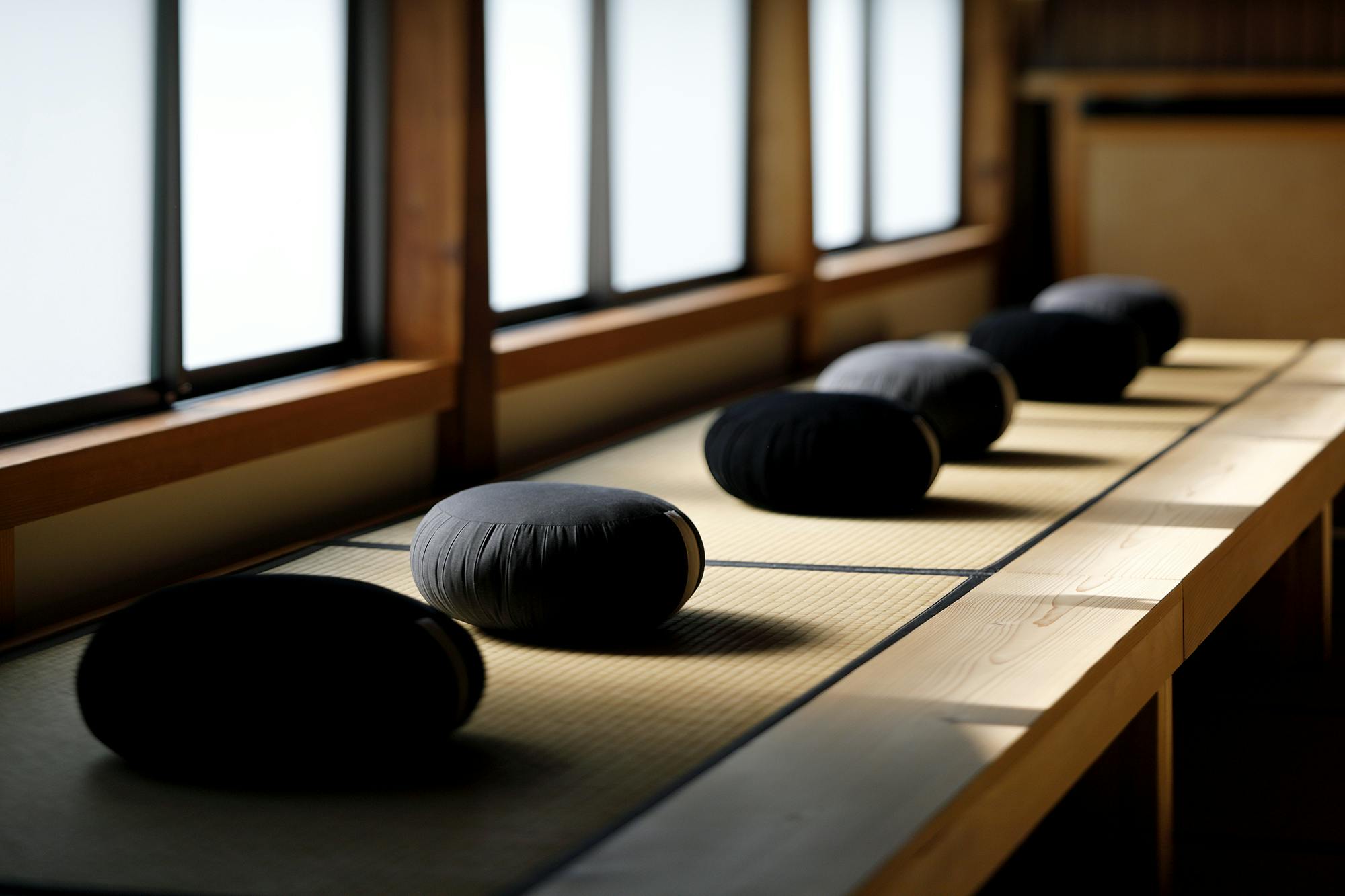 私たちは僧侶が坐禅を組む際に用いるクッション「坐禅蒲団(ざぜんふとん)」を創業より製造している富山県の仏具メーカーです。坐禅蒲団は江戸時代より使用されてきた坐禅のための専用クッションで、今も全国では多くの寺院で使われています