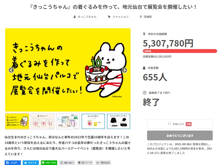 クラウドファンディングにて、約530万円/約650名の応援を背に、作者バチコの夢を叶えることができました。