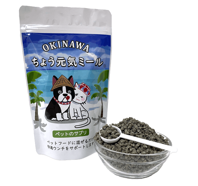 私たちの技術で何が出来るかを考えた時、動物たちの健康維持が大切だと考えました。そこで、第2の心臓といわれる腸の環境を整え、動物達が本来持っている免疫力を維持することができれば、健康で長生き出来るという研究結果をもとに、畜産で50年以上培った飼料設計技術を応用し、腸内環境のバランスを整え、免疫力の維持をサポートするペットフードサプリメント「ちょう元気ミール」を開発しました。