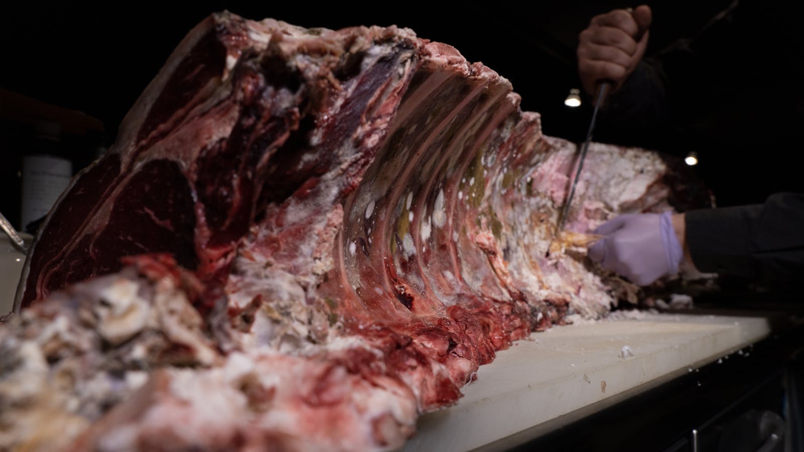 レストランの裏側に熟成庫を設け、肉の仕入れはもちろん、熟成の際に使用する菌も研究機関から独自に入手し、温度と湿度を管理した上でその肉に適切な期間の熟成を施すという完全な個別方式です。