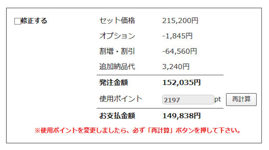 予定金額よりも577円少ない149,838円に最終的な金額を落ち着けることができました。