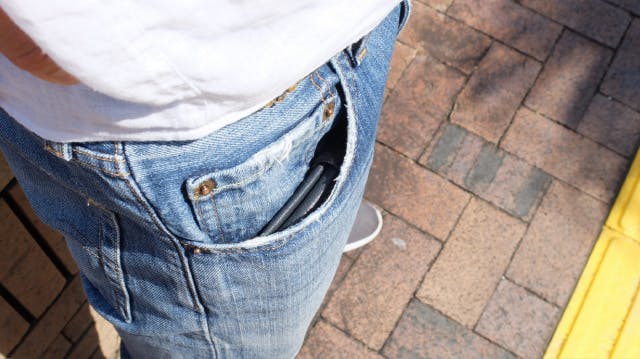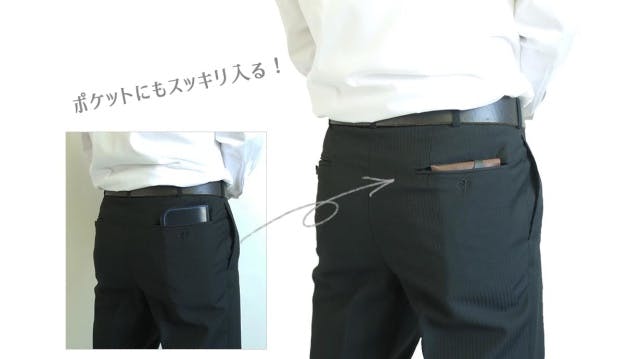 厚み3cmジーンズの後ろポケットにも、らくらく収納可能。