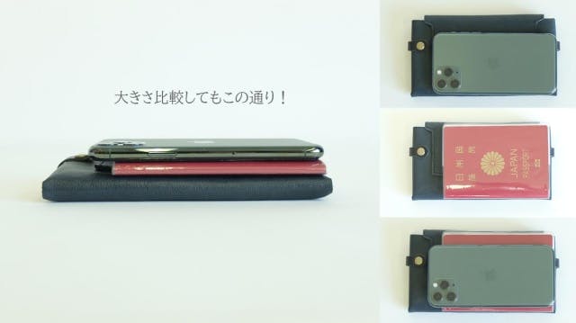 パスポート、通帳、スマートフォンが入る大きさ iphone11pro