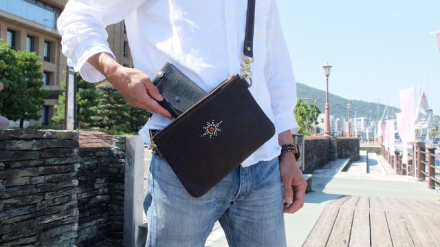 クラッチバッグ等小さなバッグにもすっぽり収まるサイズ。本革仕上げながらもゴツくなりすぎない上品な質感なので、女性にもご愛用いただけます。