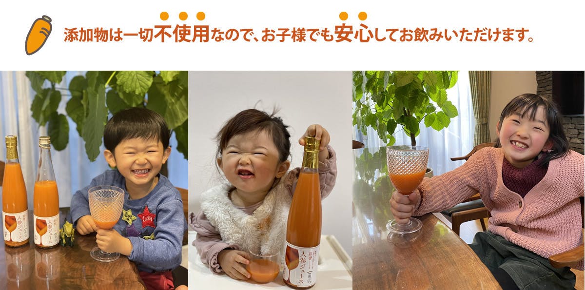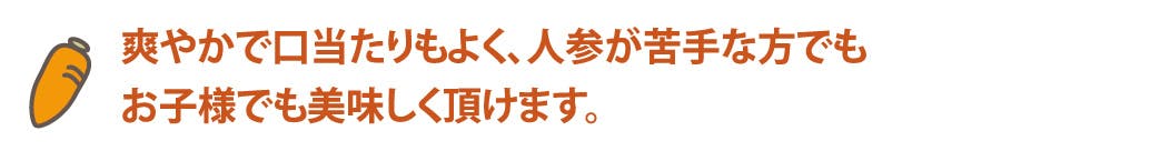 レモンを加えられていることで、爽やかで口当たりもよく、人参が苦手な方でも、お子様でも美味しく召し上がっていただける無添加ジュースです。
