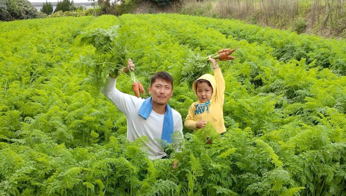 1年かけてニンジンを主力に栽培する南農園の南孝信さん。