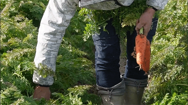1年をかけて農薬を使わずに土壌を育て、養分の高い土壌を作り上げることで、甘いにんじんが作られます。製法としては9月の初旬ごろより栽培を始め1月中旬に収獲をし、空いた土地に春は燕麦を栽培し育った麦をすぐに土壌に戻し、夏はソルゴー・トルバムなどを栽培し育った作物を土壌にそのまま戻し土の栄養分として活用します。