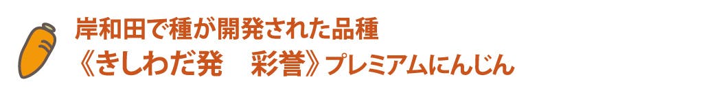 岸和田で種が開発された品種「彩誉(あやほまれ)」は、鮮やかな濃紅色で、にんじん特有のにおいや味を一変させました。糖度がとくに増す冬季にしか収穫されない希少なブランド種は、生産者の情熱と工夫がたっぷり注がれ大事に栽培されています。それが、岸和田が誇るプレミアムにんじん《きしわだ発 彩誉(あやほまれ)》です。