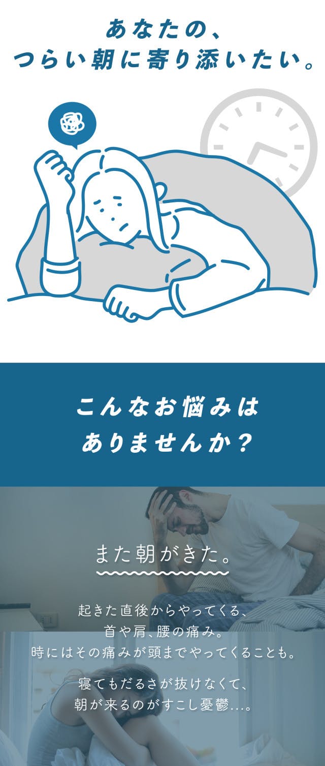 この枕で、皆さまの憂鬱な朝を変えたい。眠るのが楽しみなり、スッキリ起きられる。それが現実になりますよう、心を込めて私たちの製品をお届けします。