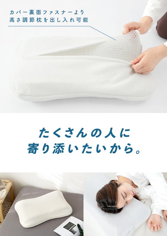 高さ調節枕は、付属のカバー裏面のチャックから出し入れが可能です。