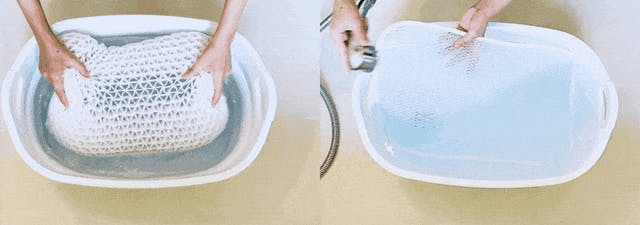 ▲お手入れ簡単!水またはぬるま湯でザブザブ洗うだけ。※枕本体は手洗いとなりますが、カバーは洗濯機でお洗いただけます。