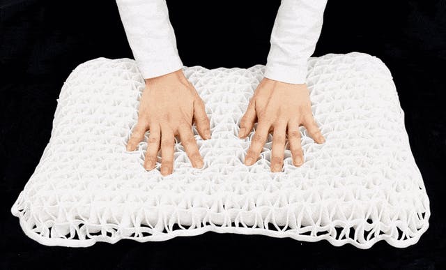 枕をかたちづくる構造は、より体圧分散にすぐれた三角格子構造になっています。