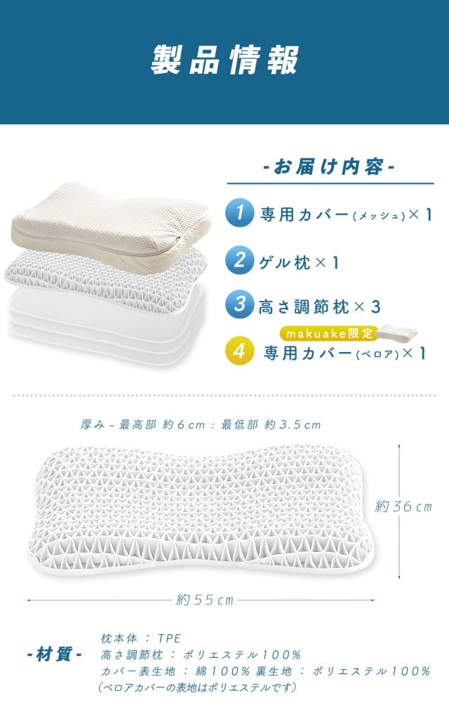 もし、極力低めがイイという方はゲル素材の枕だけでも大丈夫です!あなたにちょうどいい高さを見つけて、快適に過ごしていただければ嬉しいです。