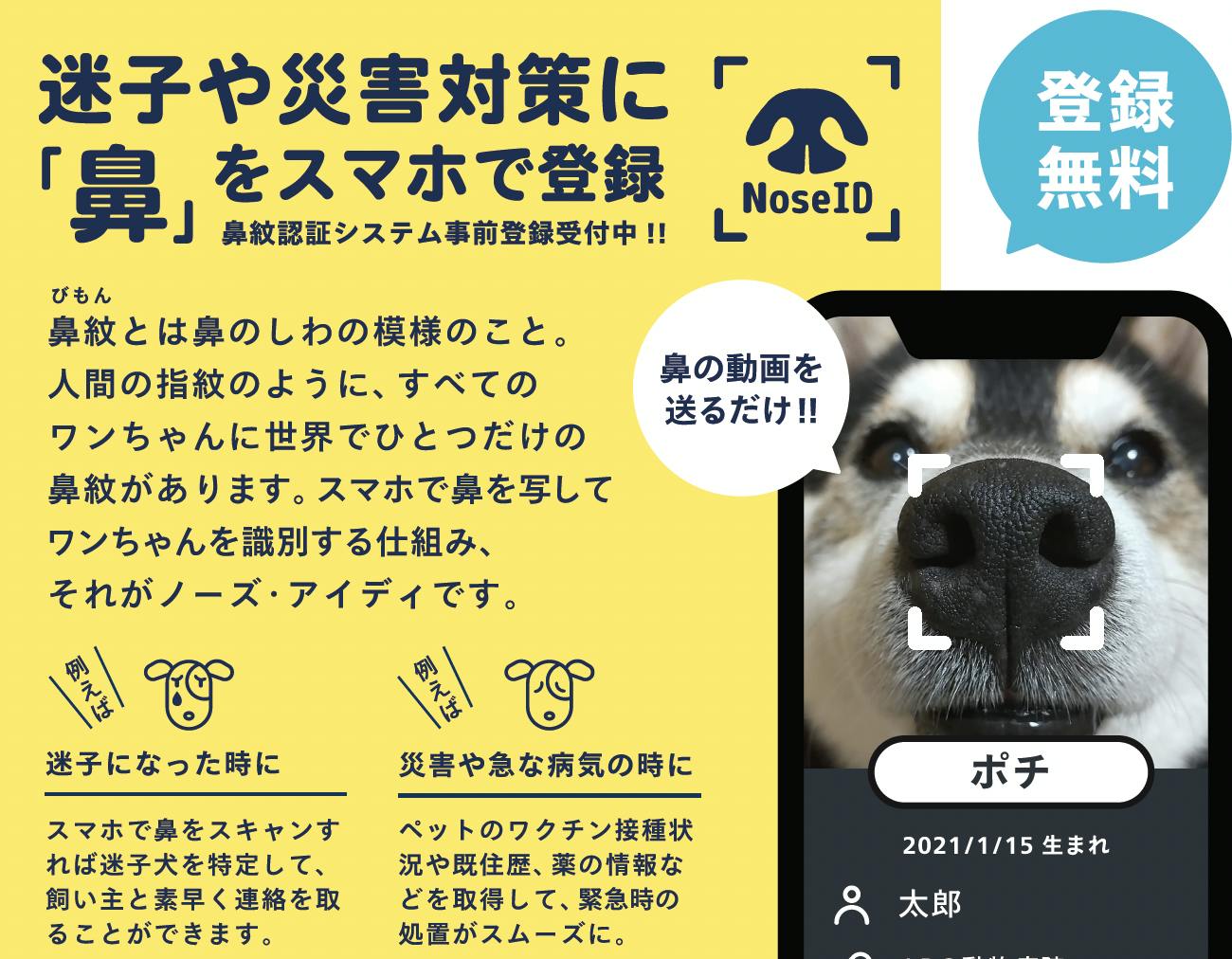 「鼻」をスマホで登録。人間の指紋のように、すべてのワンちゃんに世界にひとつだけの鼻紋があります。スマホで鼻をスキャンすれば迷子犬を特定して、飼い主と素早く連絡を取ることができます!※2022年夏リリース予定