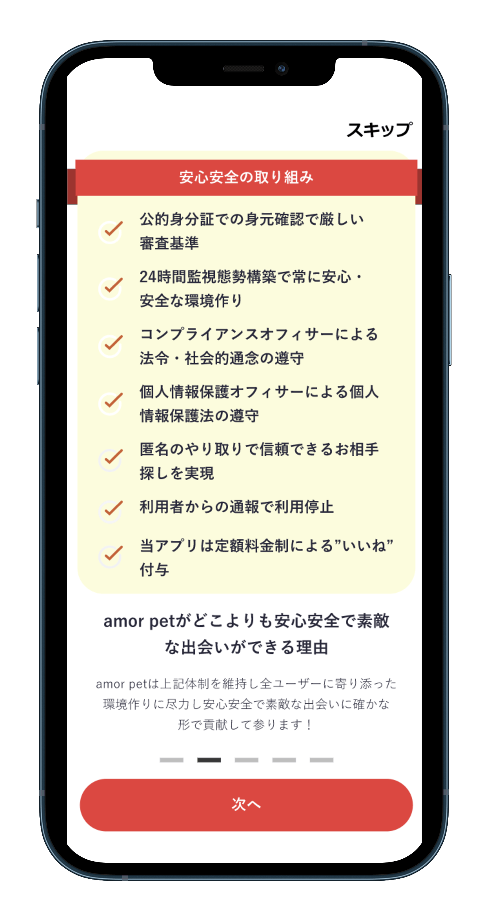 「amor pet(アモル ペット)」は、愛犬・愛猫をきっかけとした、婚活・恋活・お散歩友達探しができるマッチングアプリです。長引くコロナ禍で外出・飲み会等の自粛などが続き、結婚や恋愛の場面にも大きな影響を及ぼしており、男女が出会い、知り合う機会も大幅に減っています。そこで時節柄、積極的に結婚・恋活・お友達探しをしたいができない男女を本アプリを通じて結びつけるお手伝いをしたいと考えています。また、最大の目的は、犬猫愛好家同士を結びつけることで、愛犬・愛猫の一生涯の幸せ実現を目指したいと考えています。
