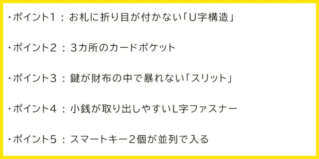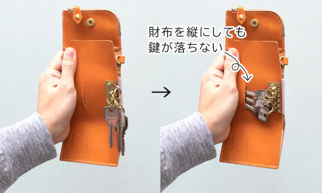 ポイント3 : 鍵が財布の中で暴れない「スリット」