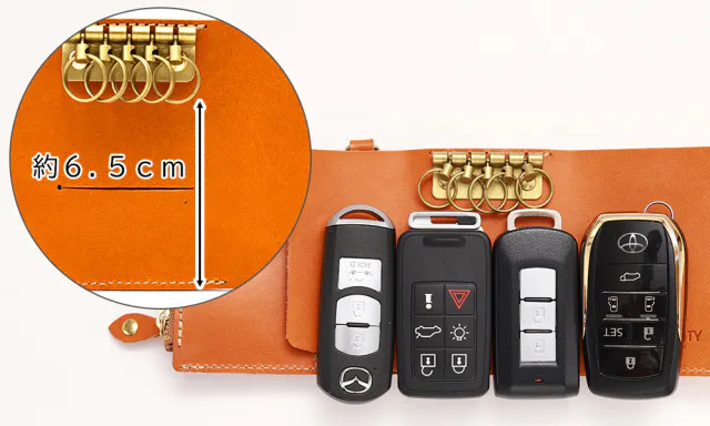約6.5cm程度のスマートキーがはみ出ずに収納可能です。