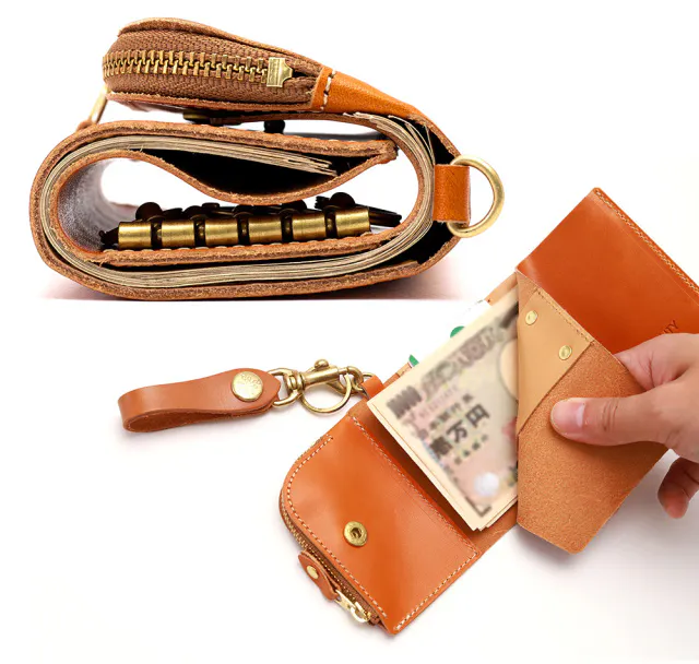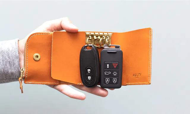 「三つ折り財布」に「三つ折りキーケース」を組み合わせた「キーウォレット」として世に送り出されました。