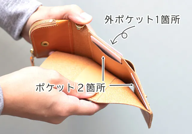 小銭ポケットは外側に配置しています。