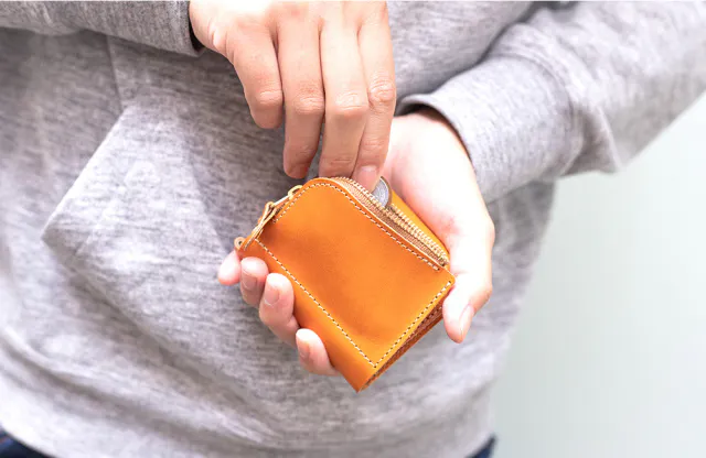 キャッシュレス化により、持ち物が減った現代らしい革小物です。
