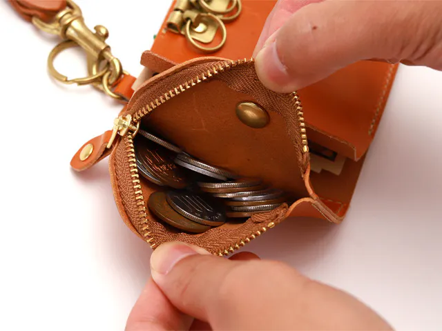 キーケースの細身のデザイン合わせて、お財布機能を組み合わせると、どうしても小銭が取り出しにくかったり、お札を折り曲げて収納する必要があります。