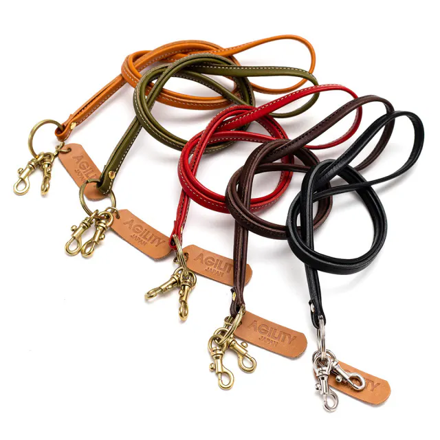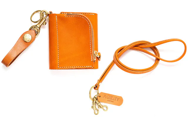 先端に「鉄砲ナスカン」が2つついた、AGILITYの革タグがワンポイントのレザーストラップです。