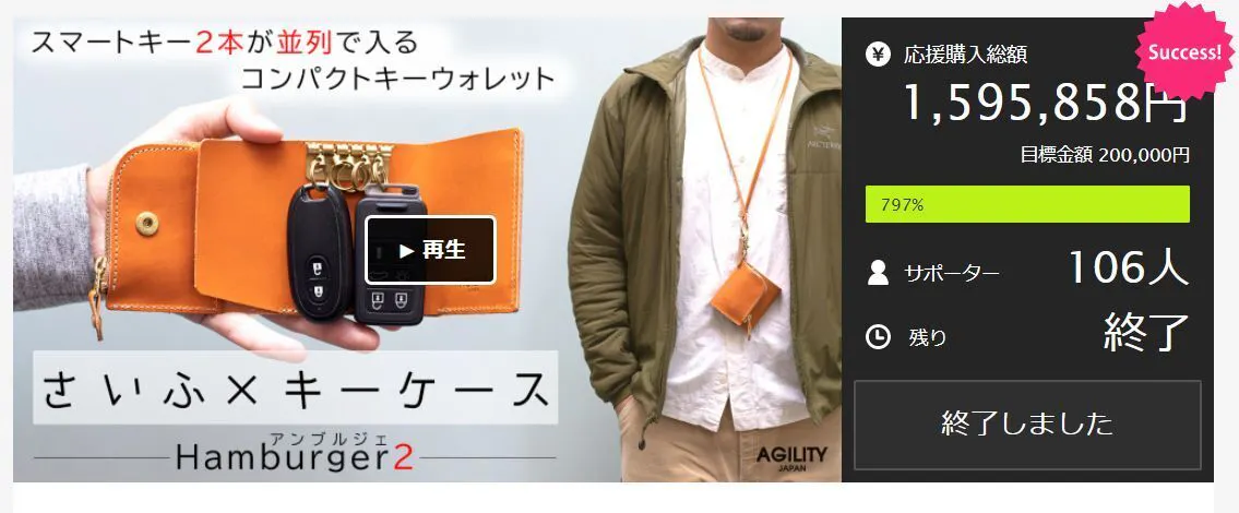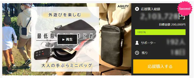 手ぶら派のユーザー様より支持され、106名の方から応援購入を頂きました。