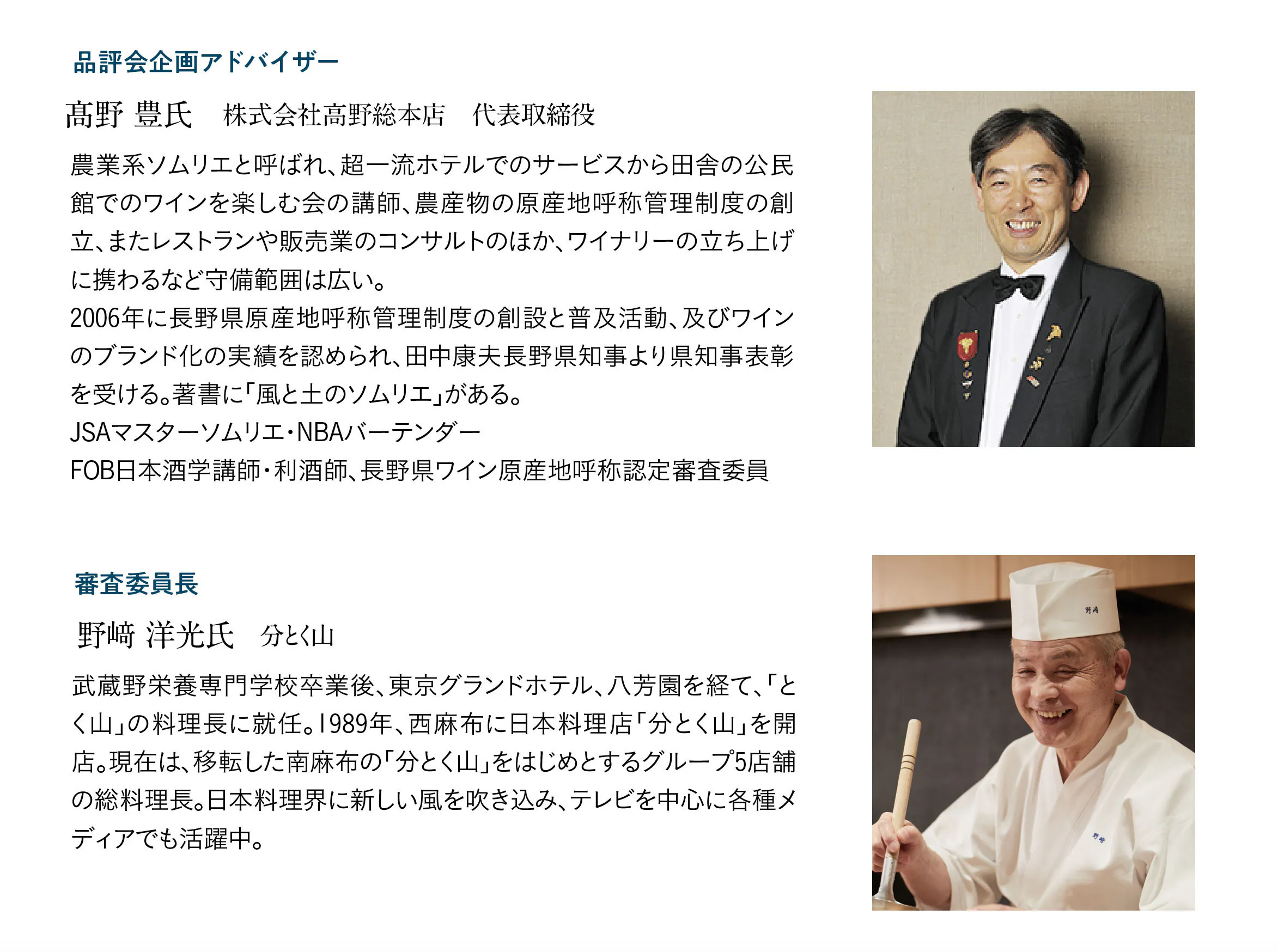 品評審査員として、東京から食文化を築いてきた和食のパイオニア・分けとく山の野﨑洋光氏、沼津から酒蔵の杜氏であり社長である高嶋氏などに参加いただき、採点をしていただく予定です。